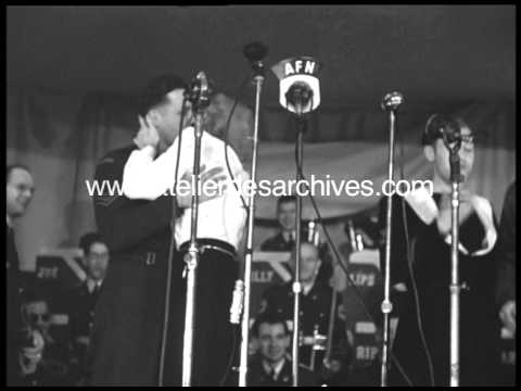 Marlene Dietrich dans un cabaret des forces alliées à Paris en 1944. Elle se lance dans une danse endiablée et embrassent les soldats à pleine bouche....